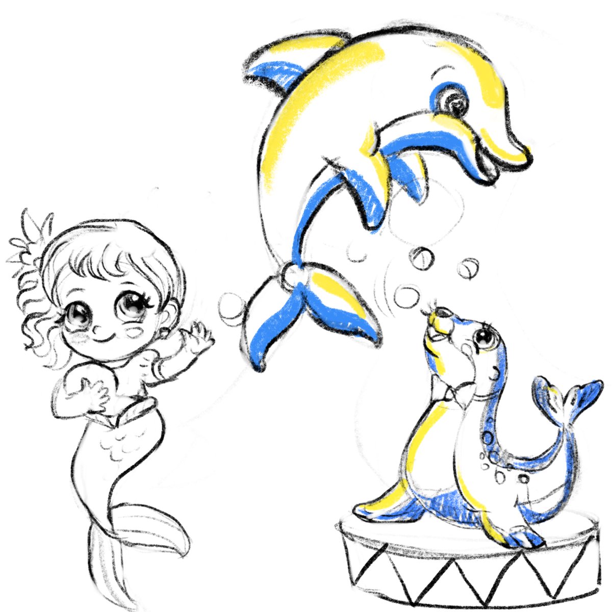Happy friends have a holiday! See how artistically they entertain the guests!Theme of the 23rd day of the Mermay challenge #Artistic #23day @mermay_official #mermay #mermay2021 #wacommermay2021 #wacom #mermaid #alinart #seal #cute #cartoon #digitalart #childrenillustrator #vector