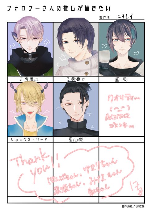 6 10 #フォロワーさんの推しが描きたい 遅くなりすみませんでした🙏 リプくださった方、本当にありがとう🙇♀️ 良い練習になりました☺️ 21/07/04 16:24