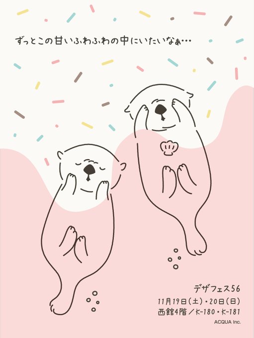 1 11 デザインフェスタ56では喫茶店をテーマに様々なグッズを販売いたします! 「ラッコちゃんドーナツカフェ」はただいま鋭意制作中…🦦🍩お楽しみに🌟 ブース場所:西館4階/K-180・K-181 #デザフェス56 #ラッコ #ドーナツ #喫茶店 #イラスト 22/09/29 17:43