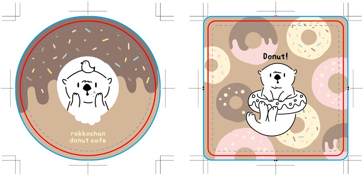 🌟ラッコちゃんドーナツカフェ🌟 グッズの進捗状況②🦦🍩 まだ現物は出来上がっていませんがコースター(まるとしかく)も販売予定です! #デザフェス56 #デザフェス #ラッコ #イラスト #ドーナツ