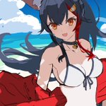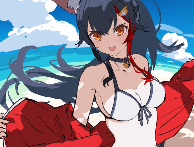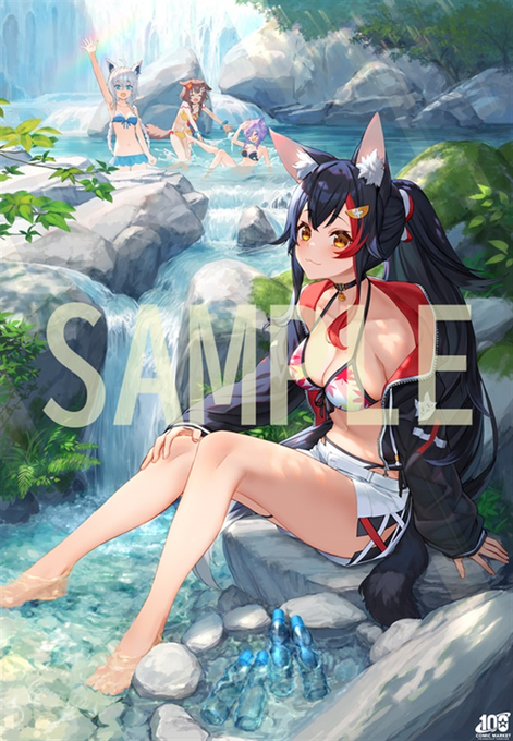 ミオちゃんの誕生日グッズタペストリー描かせていただきました!!! ミオファとバカンス水着ミオちゃん!! ミオちゃん誕生日おめでとう!!!🎉🎉🎉✨✨✨ twitter.com/ookamimio/stat…
