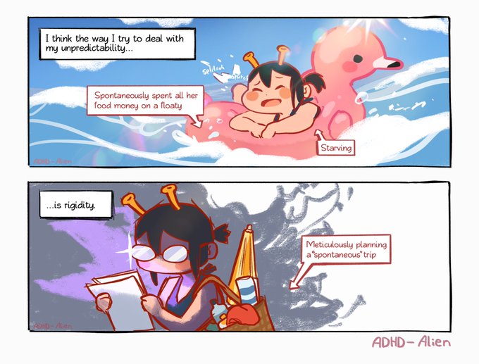 I don’t think I have ever really related to being “spontaneous” as an ADHDer until I figured out I was masking and experiencing two sides: One who spontaneously throws all reason aside in order to buy something stupid And one who tries to prevent these “mistakes” at any cost