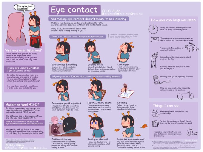 I was in a workshop the other day where someone was detailing how they, compared to others, show respect by not fidgeting and keeping eye-contact with people. So yeah, I felt the need to make this comic. Keep in mind: This isn't an ADHD specific problem and depending on-