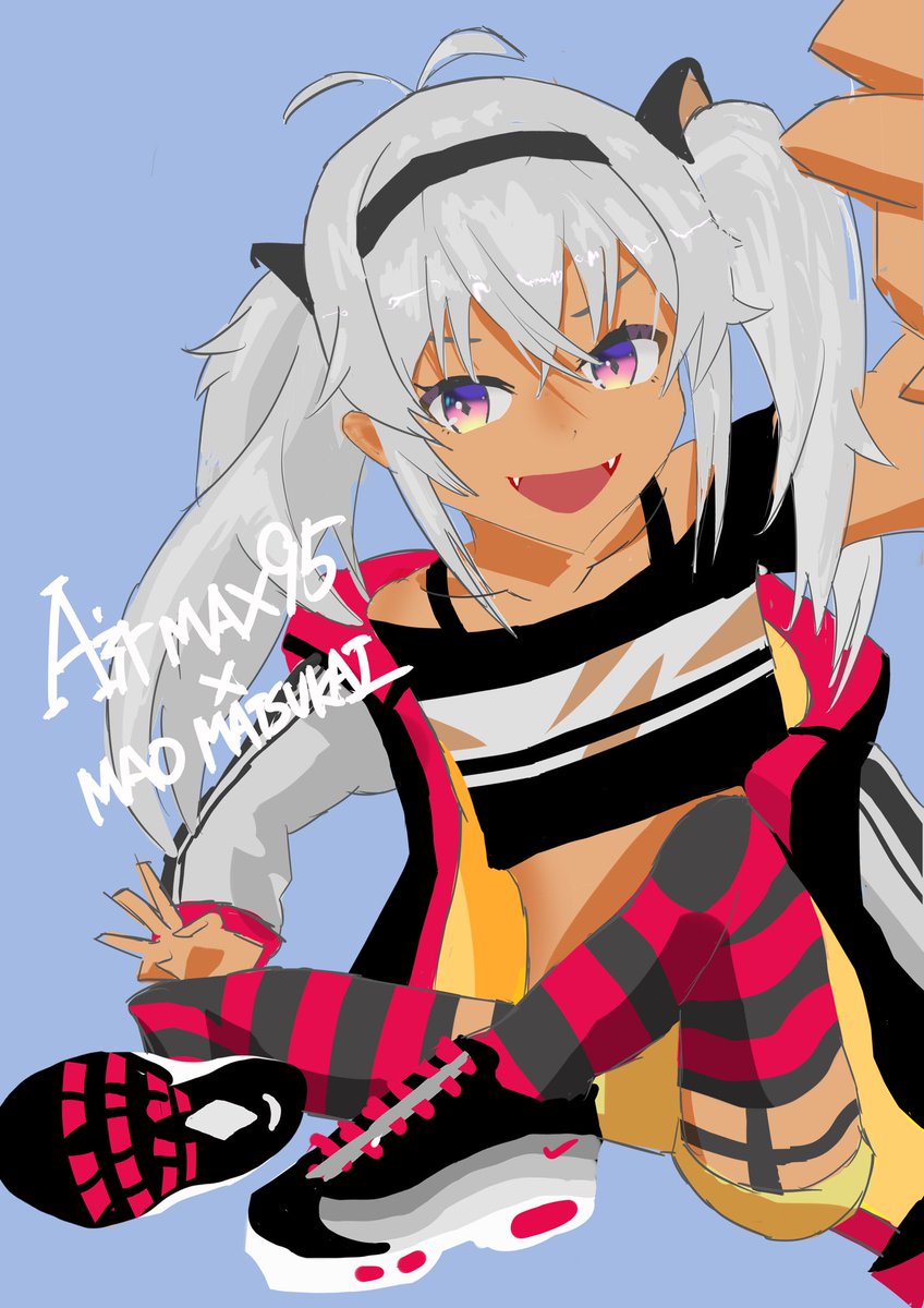 NIKE air max95赤×黒を見た時にマオマオが思い浮かんだので描いてみた。 #マオのお絵描き帳