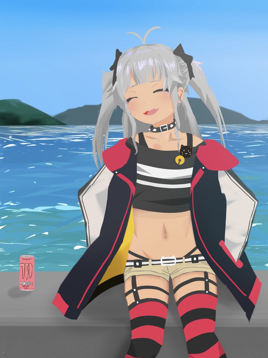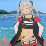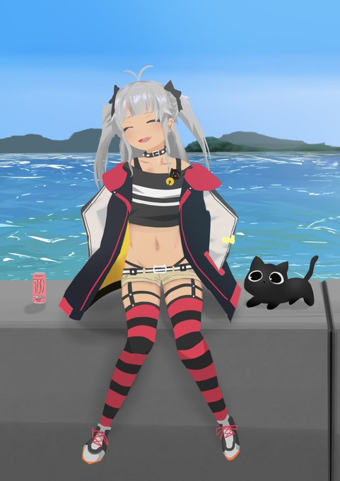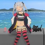 海辺で日向ぼっこ #マオのお絵描き帳
