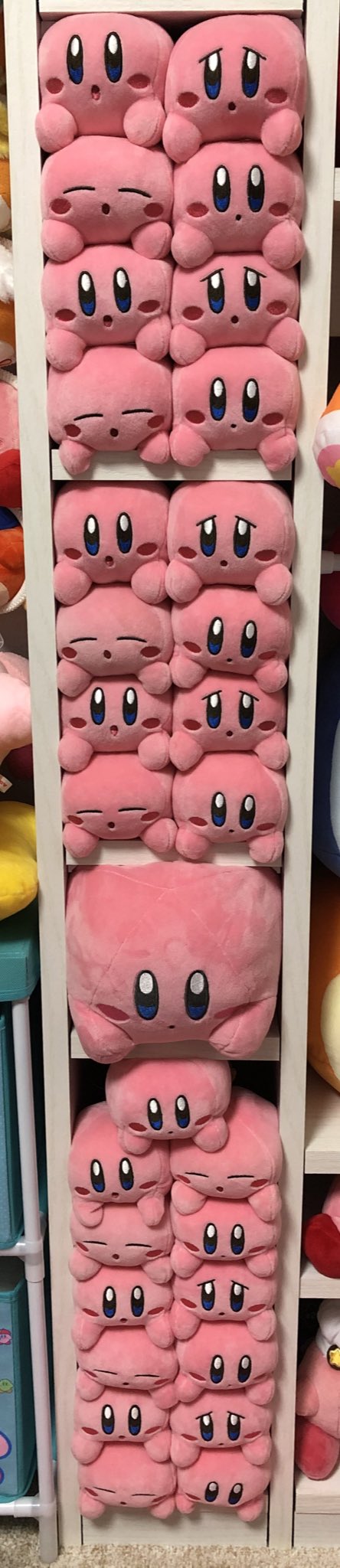 カービィ棚の配置換えしたいのだけど、クローゼットに埋もれてる子たちを整理してたらそれだけで休日が終わっちゃう…