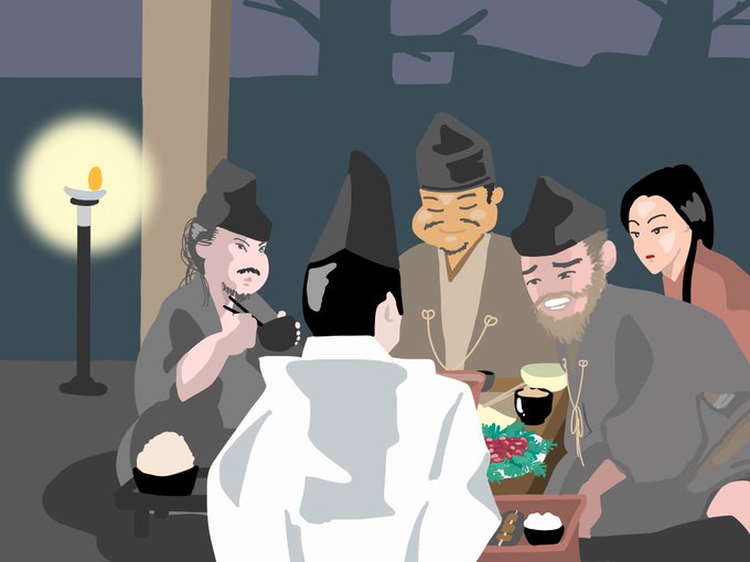 21 107 和田殿宅での楽しげな宴の様子を描きました。 どういうメンツや。 #鎌倉殿の13人 #殿絵 #鎌倉絵 22/09/10 21:12