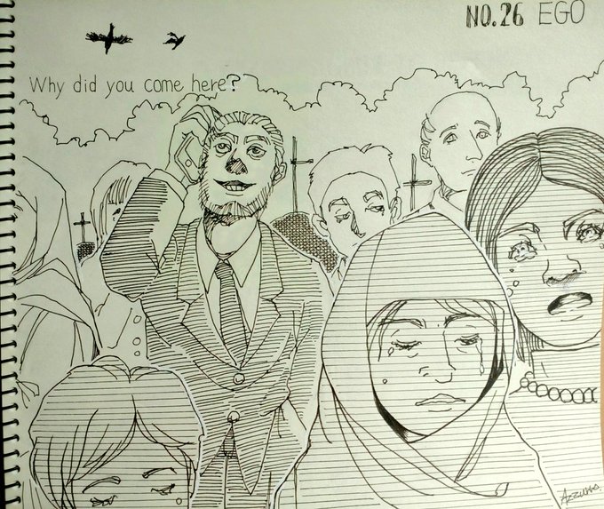 #Inktober_PerfectChallenge #inktober2022 #inktober #kuretake_inktober2022 #インクトーバー #インクトーバー2022 #ego #筆携 #シグノ #ペン画 26日目ですよ!お題はEgo、エゴイスト、エゴイズム、自我、自分勝手…ということで、葬儀のワンシーン。 あと5日、完走目指して頑張ります(*´ェ`*)