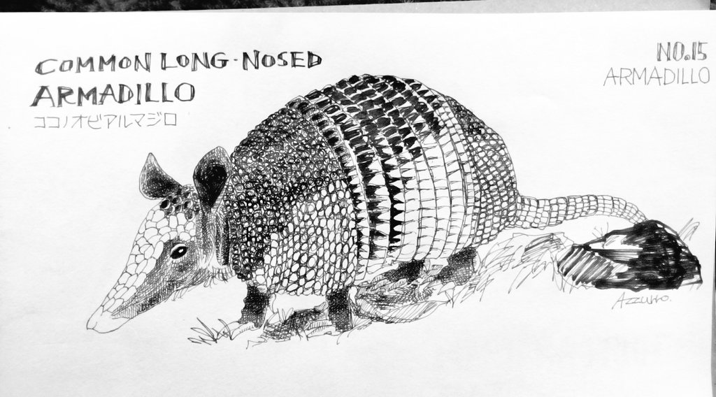 #インクトーバー #inktober #inktober2022 #kuretake_inktober2022 #アルマジロ #Armadillo #動物好きな人と繋がりたい #ペン画 #筆携 #シグノ #Inktober_PerfectChallenge 15日目はアルマジロ!こんな毛の生え方しとったんか…難しかった〜(*´Д`) ともあれ完走目指して頑張ります(*´ェ`*)