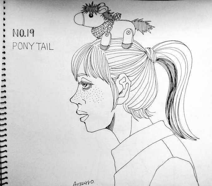 #Inktober_PerfectChallenge #inktober #inktober2022 #インクトーバー #インクトーバー2022 #kuretake_inktober2022 #ポニーテール #筆携 #シグノ #ペン画 もう19日目!馬のぬいぐるみもご一緒に(*^^*) 完走目指して頑張ります(*´ェ`*)