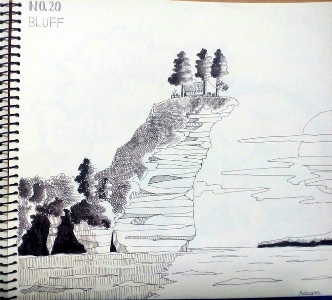 #Inktober_PerfectChallenge #bluff #がけっぷち #岬 #inktober2022 #inktober #インクトーバー #インクトーバー2022 #kuretake_inktober2022 #筆携 #シグノ #ペン画 いよいよ20日目!bluffには崖や岬の意味もあるそうですよ。秘密の小屋とか憧れる‼ あと11日、完走目指して頑張ります(*´ェ`*)