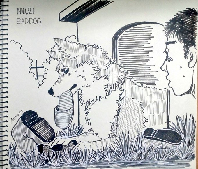 #Inktober_PerfectChallenge #inktober2022 #inktober #インクトーバー #インクトーバー2022 #kuretake_inktober2022 #筆携 #シグノ #ペン画 #動物好きな人と繋がりたい #犬好きな人と繋がりたい #Dog #baddog 21日目はbaddog、ということでいたずら犬を2点! 完走目指して頑張ります(*^^*)