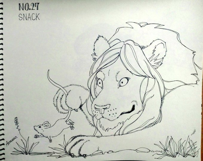 #Inktober_PerfectChallenge #inktober2022 #inktober #kuretake_inktober2022 #インクトーバー2022 #インクトーバー #筆携 #シグノ #ペン画 #ライオン #ねずみ #Lions #snack 27日目はスナック、ということでライオンのおやつは…‼シマッタデチュー!!!!! 完走目指して頑張ります(*´ェ`*)