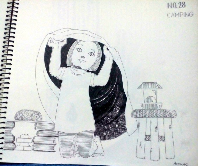 #Inktober_PerfectChallenge #inktober #inktober2022 #インクトーバー #インクトーバー2022 #kuretake_inktober2022 #筆携 #シグノ #ペン画 #camping #children #ごっこ遊び #子ども お家のソファーに毛布をかけてキャンプごっこ。 28日目は思い出を絵にしてみました(*´ェ`*) 完走目指して頑張る!