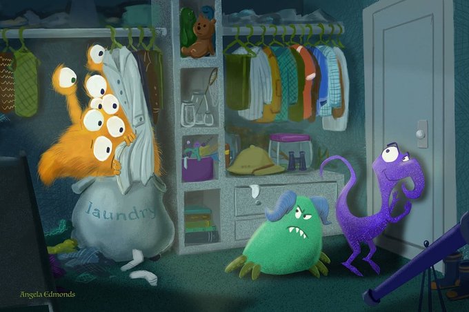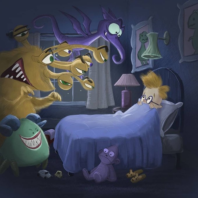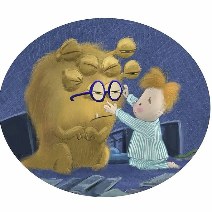 I love the warn connection in this illustration. William the boy places his glasses on Dilbert the monster so he can see. #publishing #kidlitart #childrensbookart #picturebookillustration #inktober2021 #halloweenillustration #monsterillustration #illustrationforkidsbo…