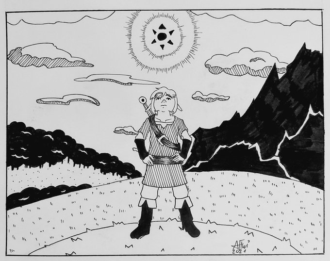 Imktober 2021. Day 13 - Roof. Is there even one? #inktober #inktober2021 #inktober2021day13 #roof #ceiling #BreathoftheWild #botw #link #リンク #ゼルダの伝説