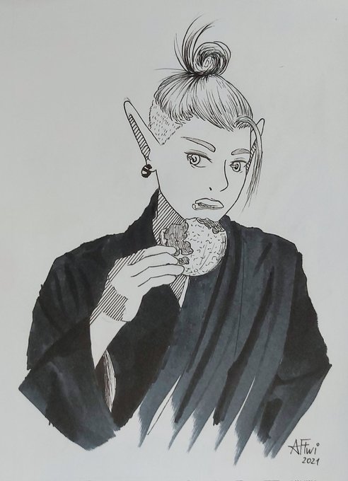 Inktober 2021. Day 18 - Moon. Just a midnight snack. #Inktober #inktober2021 #inktober2021day18 #moon #day18 #BreathoftheWild #botw #link #kimono #ink #リンク #ゼルダの伝説 #ブレスオブザワイルド #月