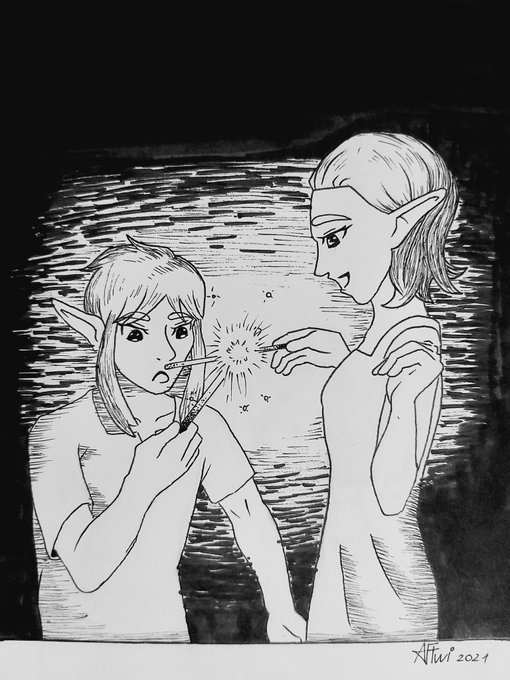 Inktober 2021. Day 27 - Spark. A late summer feeling. #inktober #inktober2021 #inktober2021day27 #day27 #Spark #zelda #link #zelink #BreathoftheWild #botw #リンク #ゼルダ #リゼル #ゼルダの伝説 #ブレスオブザワイルド
