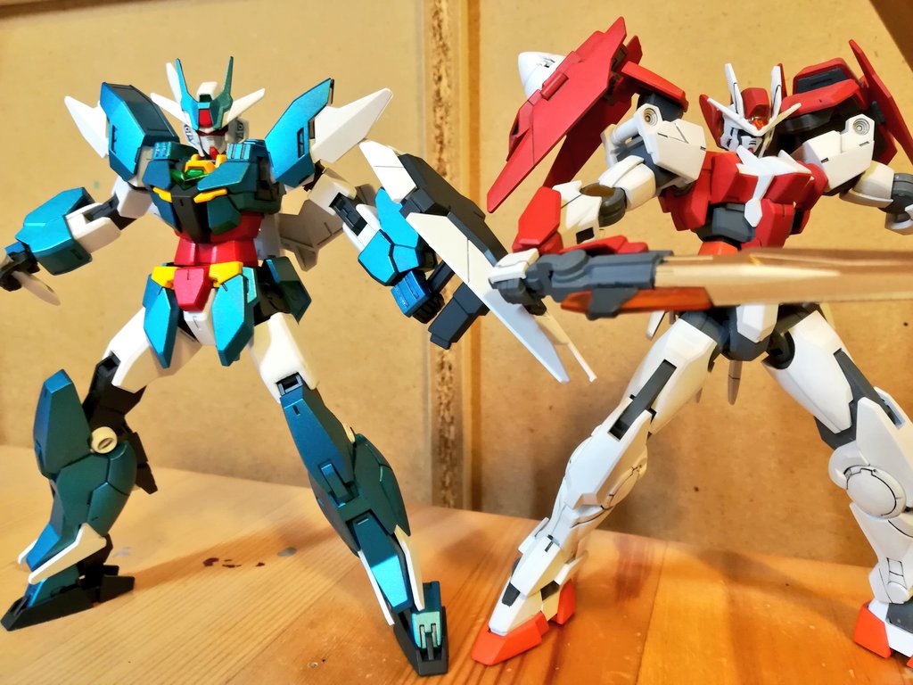 #ガンプラの画像貼るとRTされると聞いて #g_bd 新旧ダイバーズ主役機コンビ!本当に楽しませてもらったアニメでした…… そして私のプラモデルの技術をキットを通じて1段階上げてくれたアニメでもありますね、アースリィガンダムほんと綺麗に塗ることができて感動です。