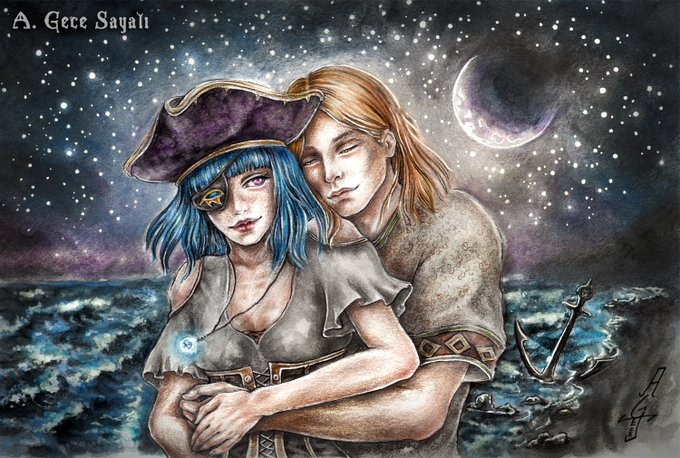 "I dream of you" (2020) My pirate & knight OCs.⚓⚔️ etsy.me/3tIApRi #fantasyart #darkart #pirates #knights #medievalart #darkfantasy #dndart #traditionalart #pencilart #originalcharacter #watercolor #sailing #illustration #artistsontwitter