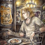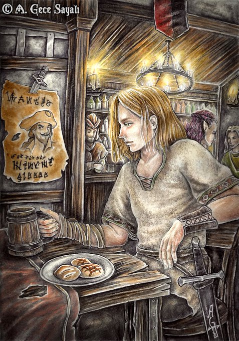 "The Tavern" (2020) Characters are from my novel in progress. Coloured pencils and watercolours etsy.me/3JUDHGD #dnd #dungeonsanddragons #dndart #medievalart #art #illustration #fantasyart #oc #originalcharacter #artistsontwitter #tavern