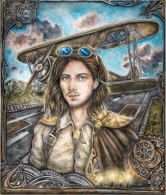Drawing the gorgeous face of @vubia1 is always a pleasure #steampunk #steampunkart #illustrationart #ArtistOnTwitter #fantasyart #traditionalart #fantasyportrait #portrait #pencilart #Pencildrawing #watercolor
