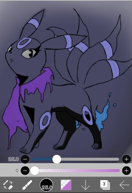 色の塗り方教えてもらったが、まだまだibisPaint Xにはなれないなぁ…。 一応このブラッキーは、あくとゴーストをイメージしてみました。影は途中で諦めた。 #ポケモン #ブラッキー #イラスト好きな人と繋がりたい