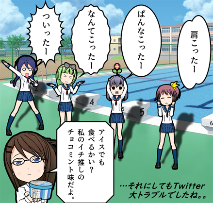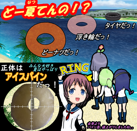 ビミョーな1コマ 『あほいんぽんちえ』 エヌ氏「夏 夏 ナツ ナツ ドーナッツ!」 エス子「愛 愛 アイ アイ アイスパイン♪」 ぺろ (ぐだ~) 海もプールも行ってないなぁ~ indieggc.com