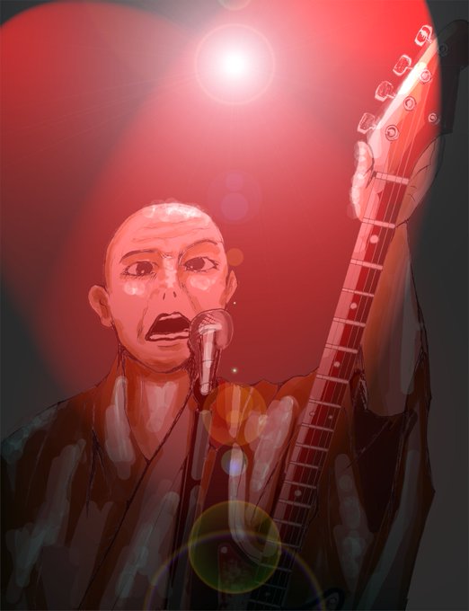 【アニキ生誕記念2022】 これ描いたの一昨日だったんですが、昨日のライブで 「人間椅子でねぷた出たいね。研ちゃんがねぷた引いてノブくんが太鼓叩いて俺はお囃子。」みたいな話して下さって…タイムリー!!(嬉) しかし後ろの2人適当wwww #人間椅子 #絵描きさんと繋がりたい #イラスト