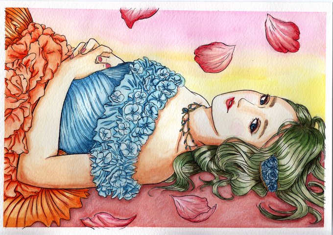 【ガチ水彩修行 その④】 快適アート(@kaiteki_y)さんの塗り絵BOOKで塗ってみた。その④ このドレスの配色は…と、気が付いた方、何人いるかね。 水色の部分塗ってて発狂しそうになったが、 やはり楽しいw #塗り絵 #水彩 #快適アート #イラスト好きな人と繋がりたい #絵描きさんと繋がたい
