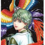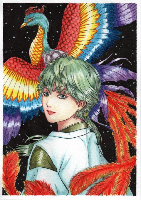 【ガチ水彩修行 その⑤】 快適アート(@kaiteki_y)さんの塗り絵BOOKで塗ってみた。その⑤ 背景はアクリルガッシュないからサインペンで塗って ホワイトでごまかしましたw #鳳凰 #塗り絵 #水彩 #快適アート #イラスト好きな人と繋がりたい #絵描きさんと繋がたい