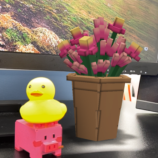 A new mini flower pot on my desk, but it's in AR 🤣 Have you felt the blossom?💐 #voxelart #voxedit #voxel #voxelartist #sandbox #sandfam #metaverse #3dmodel #3dart #futuristicmodel #ar #AugmentedReality