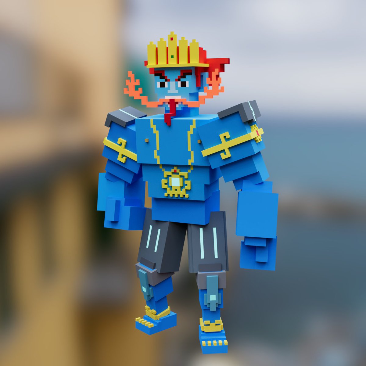 Today is day-15 of 7th month in Lunar calendar which is the actual day of Hungry Ghost Festival, and here's The King of Ghosts in voxel made in @VoxEdit, rendered in @ltrender3d #voxelart #voxedit #voxel #voxelartist #sandbox #sandfam #metaverse #3dmodel #3dart #futuristicmodel