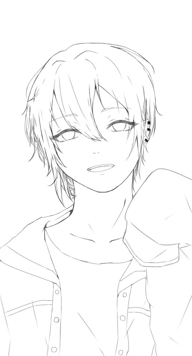 ほんとに、何となく線画だけ。 10月に描いた黛くん 色塗りはいつか #灰画 #指描き #イラスト