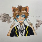 \( 'ω')/ウオアアアアアア!! テストが終わったぞー! «٩(*´ ꒳ `*)۶» らぎーくんかいたよ٩( ᐛ )وバナナ #ツイステ #ツイステファンアート #イラスト #絵描き #絵描きさんと繋がりたい