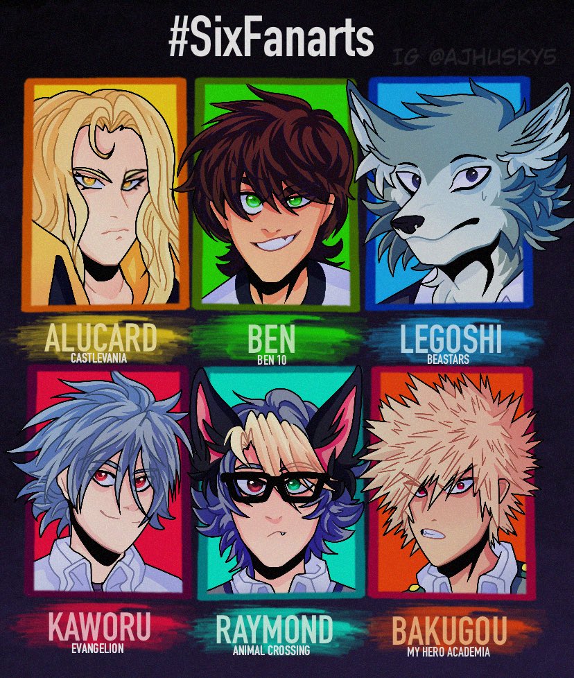 I was convinced to do this cause I was 👌 this close not to cause I’m lazy. But I hope you guys like this! I personally like how Kaworu and Ben came out💚💚 #SixFanarts #SixFanartsChallenge
