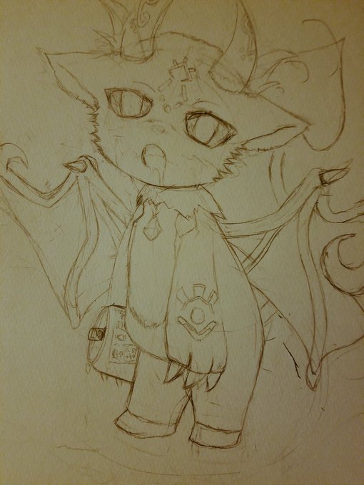 0 5 初デビ様下書き 顔、手、足、羽全て難しいんじゃ デビ公がっ!ペン入れするからまっとけよ! #でびるさまにささげるえ 20/07/26 00:28