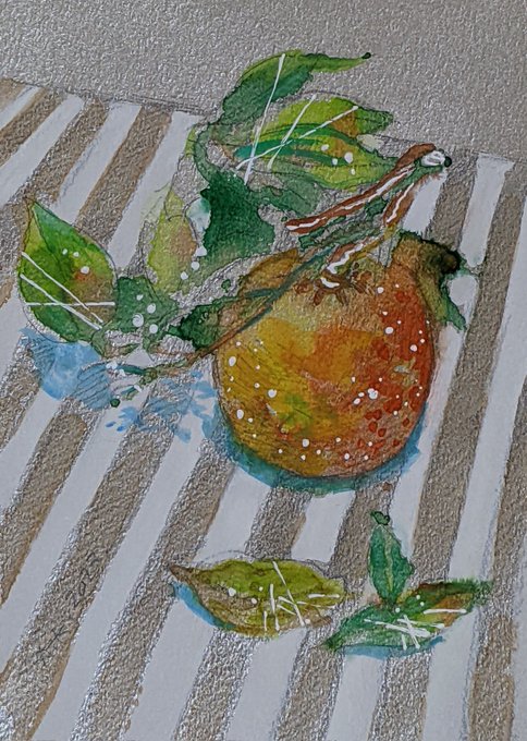 2 18 つるつるでぴかぴか✨の、 絵具をはじく紙に、無理やり描いてみました。ゴリ押しと言うやつです。 オレンジらしい…🍊 #オレンジ🍊 23/01/31 18:22