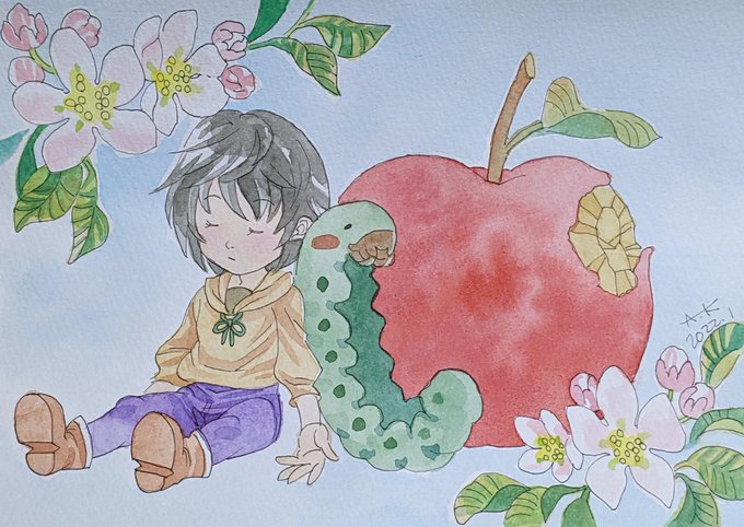 手描きイラスト オリジナル イラスト 原画 子供 男の子 居眠り うたたね リンゴ 芋虫 イモムシ 虫 花 昆虫 青虫 春 🎈1.200〜出品中です🎈 #ヤフオク出品中 #原画販売 #イラスト原画 page.auctions.yahoo.co.jp/jp/auction/p10…