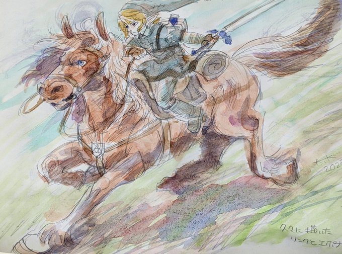 トワイライトプリンセス(ゼルダの伝説)をイメージした落書き_φ(・・ ハイラル平原(ゲームの中のステージ)のBGMを部屋でかけていたら、いつの間にか描いていました(笑) 走り書きなので、適当でゴメンね! そういえば、新作のゼルダの伝説が予約開始ですね🎈楽しみです🥰 #らくがき