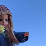 リカちゃんと昼間の月🌕 最近は、よく胃腸炎になったりして加齢を感じています😅 何とか、いつまでも健康にお絵描きしたいですφ(..)
