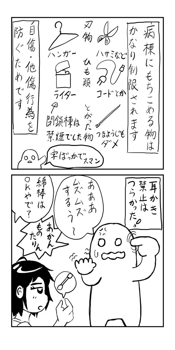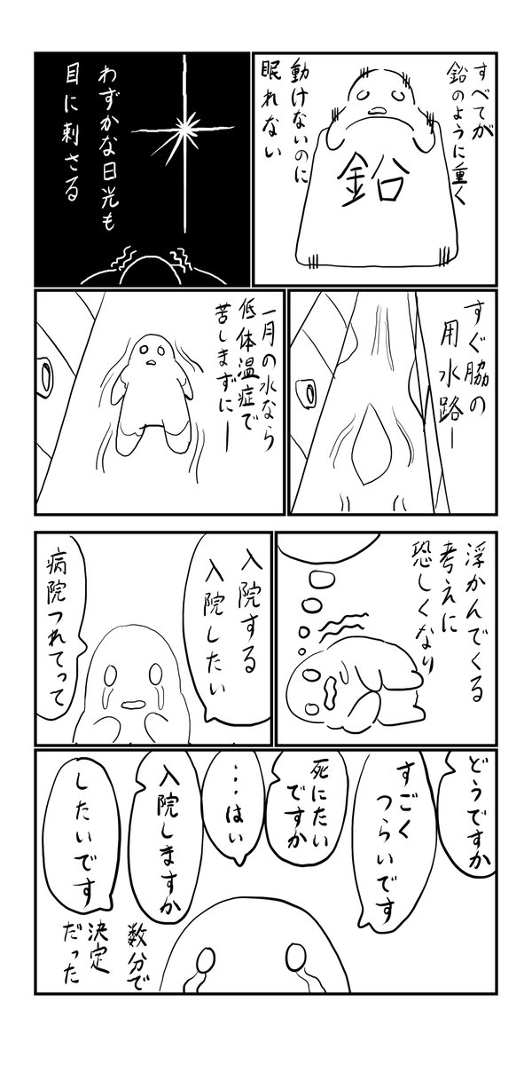 #ぼくの精神科入院記 #漫画が読めるハッシュタグ 一番重い回 次回からはコメディに戻ります ー現実に自殺の手段を真剣に考えているとしたら 具体的であるほど実行の可能性は高くなります 専門家に助けを求めてください D.バーンズ