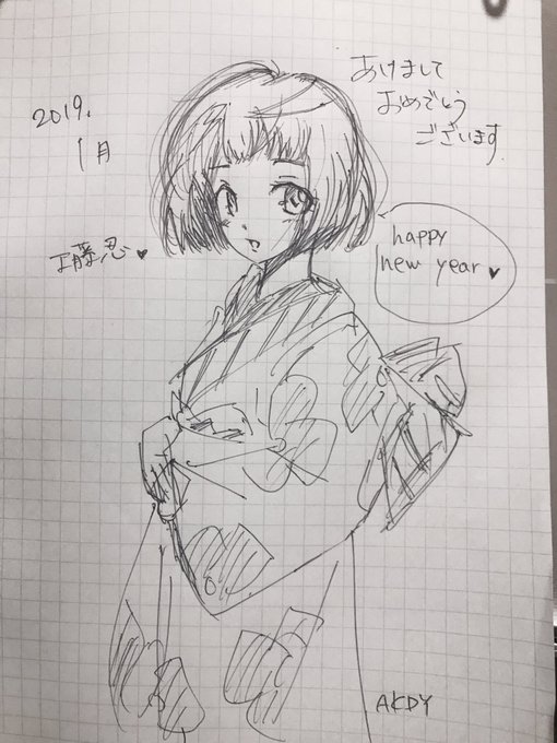 13 28 てことでさくっとボールペン落描き工藤忍ちゃんお正月振袖スタイル超絶かわいいあけましておめでとうございます本年もよろしくどうしのぶ #工藤忍ちゃんめんこい 19/01/02 00:22