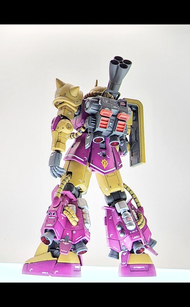 26 322 シーマ様のモビルスーツ2体目完成しました!! HGUC オリジン版「高機動型ザクⅡ」 ディテールアップ+一部モールドを消しストレートに組み前回製作したゲルググマリーネと並べても違和感がないように製作しました… モデラー復活から34作目になります… #ガンプラ #ザク 22/09/02 20:33