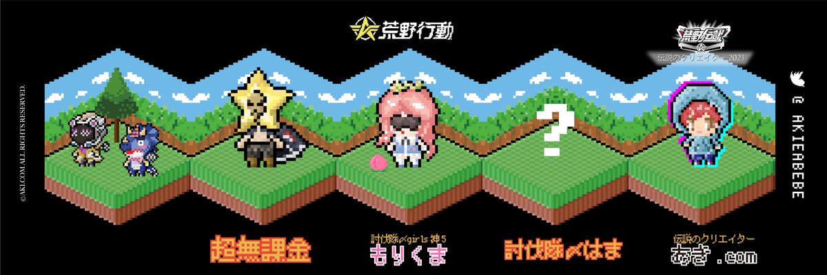 🎨ファンアート🎨 光動画終わったら寂しくなるので、気分転換で推しバナーを新しく制作なう☺️ はまさん🦇追加予定⁉️ はまさん🦇には内緒🤫 #荒野あるある は25日23:59〆切⌛️ Please watch my pinned tweet if possible! #荒野行動 #ドット絵 #pixelart #あきドットコム