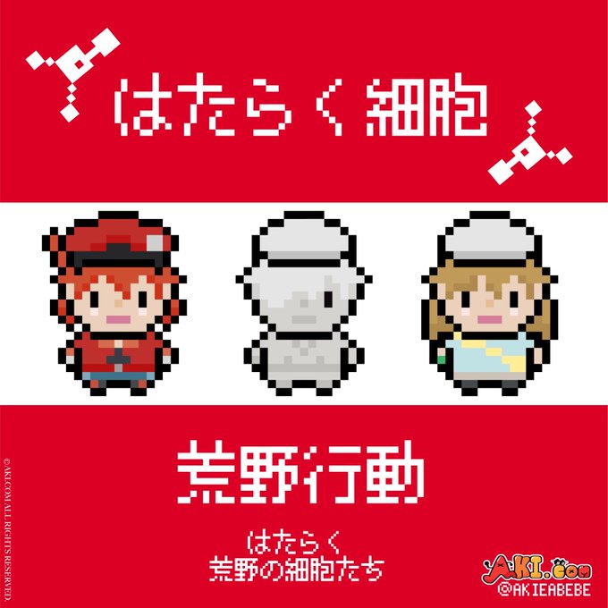 7 75 💊はたらく細胞💊 絶賛コラボ中の🌡細胞たち🌡 金枠は当たりましたかー⁉️ 近日中にあの方と⁉️⁉️⁉️コラボ作品ツイートしますよぉ🍱さぁーだれとコラボするでしょーかー⁉️ 🍳だれだろーねーwww リプで予想してみてね‼️ #あきドットコム #荒野行動 #ドット絵 #pixelart 21/12/18 11:04