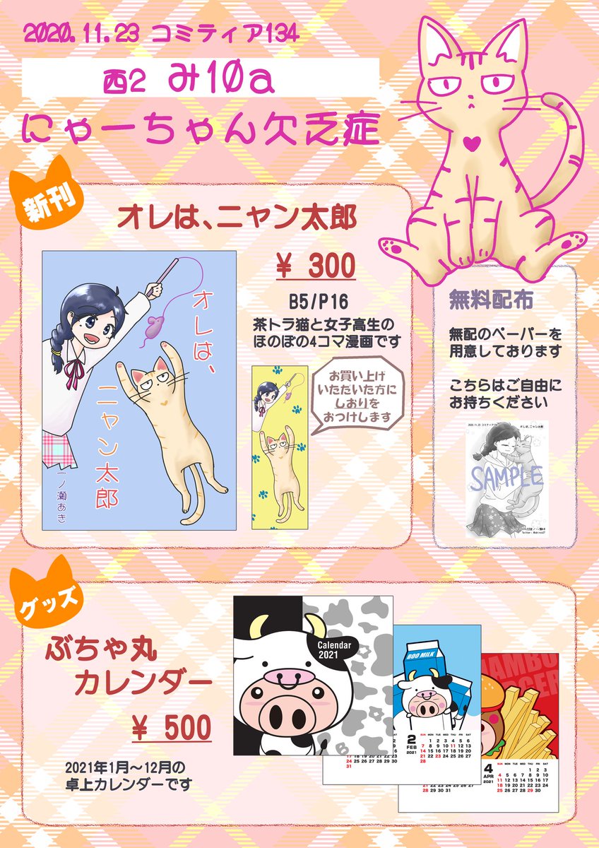 11/23(祝) コミティア134に初参加します! お品書きと、新刊1ページ目載せます。 スペース【み10a にゃーちゃん欠乏症】にて、 お待ちしております! #コミティア134 #COMITIA134