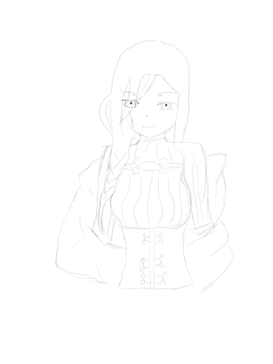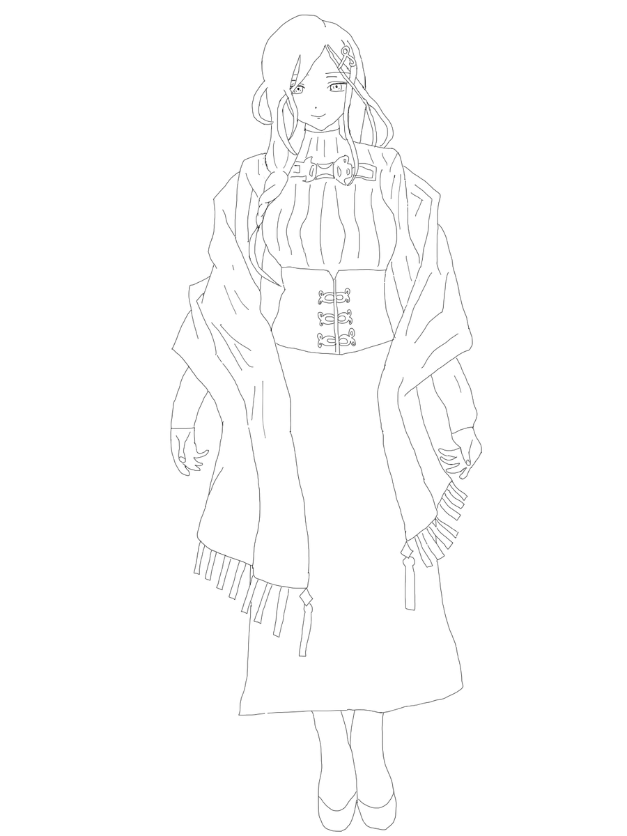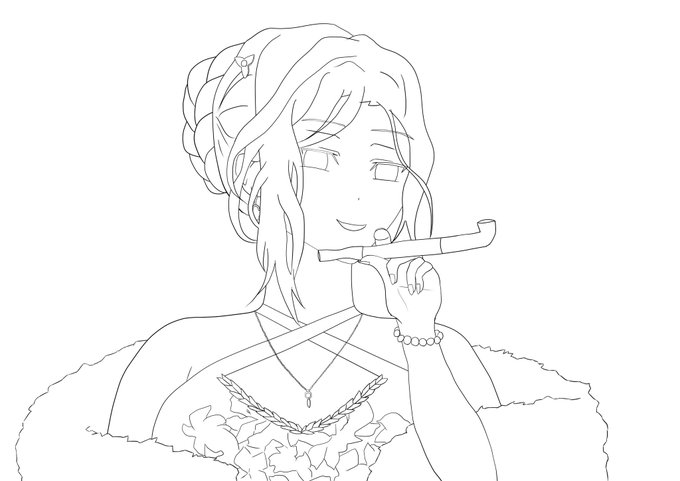とりあえず線画まで 残りは明日(今日)仕上げます #白雪巴新衣装 #巴絵
