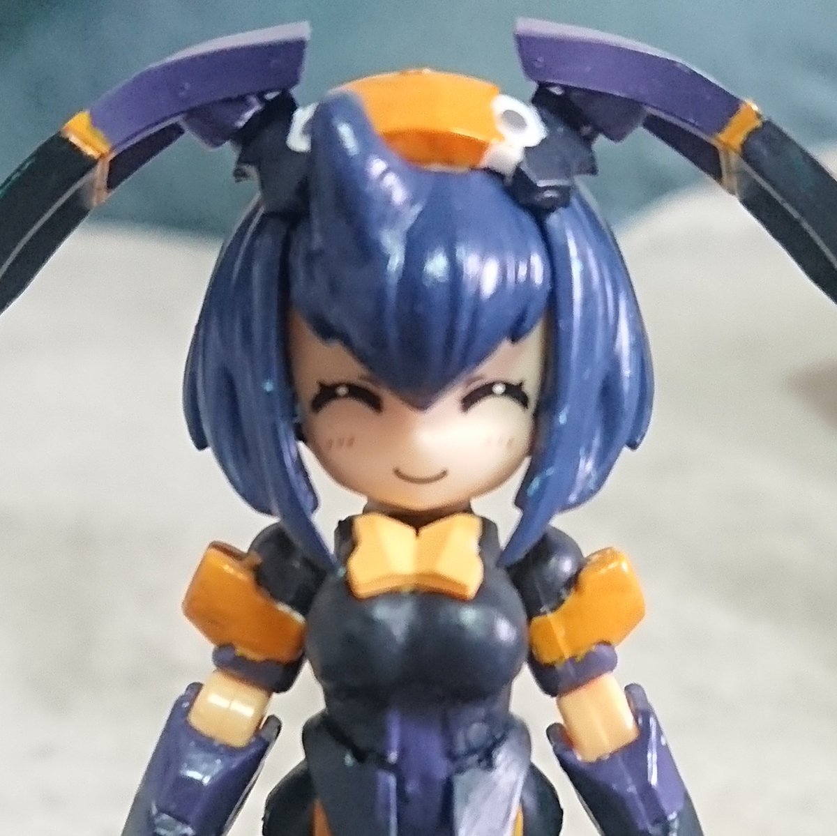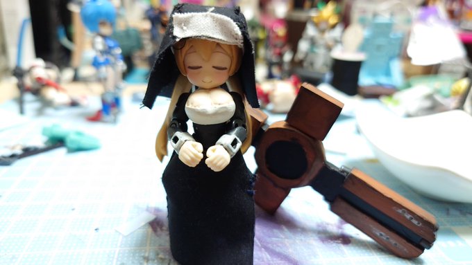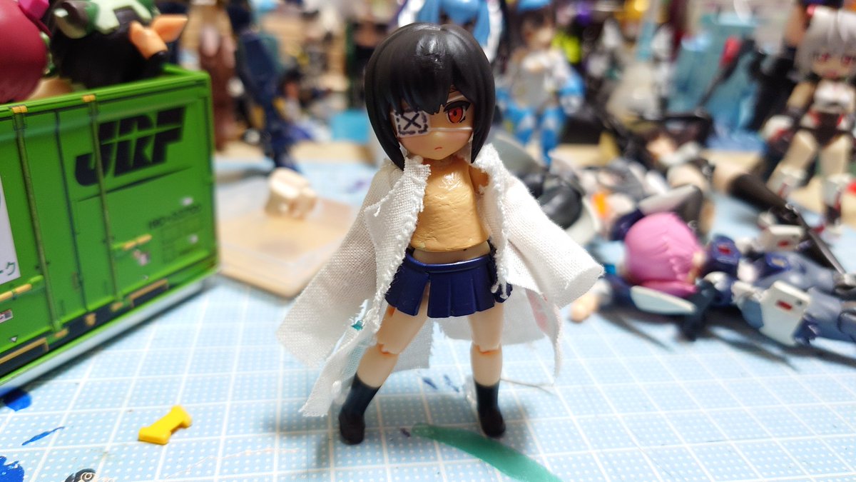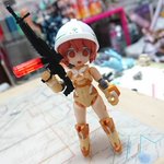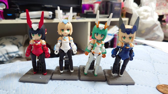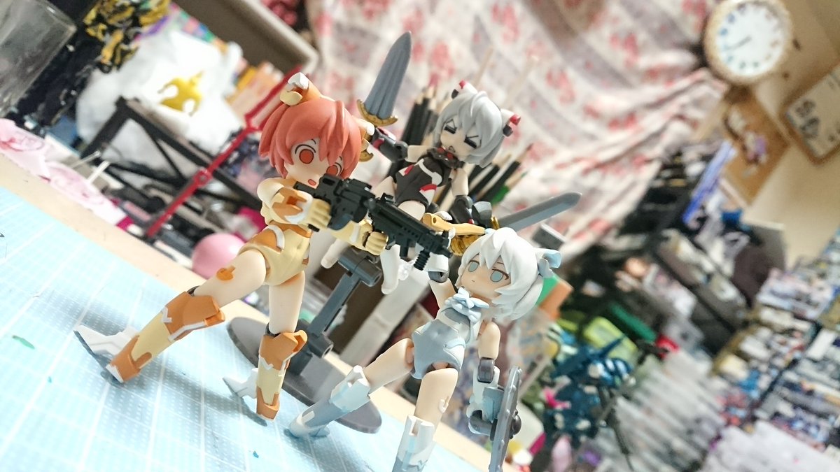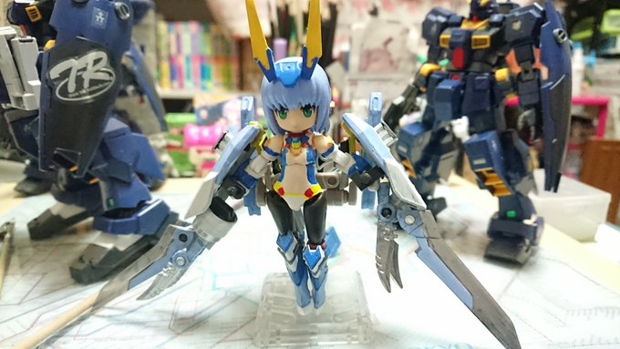 #デスクトップアーミー 未完成ですが… 名前:未定(明日決定) モチーフ:東京メトロ東西線05系24編成(AL車) 特徴:モチーフにした車両同様『リサイクル』を掲げ、有り合わせのパーツとメガミデバイスのジョイントパーツをいい感じ(ここ適当)に再利用し作り上げました
