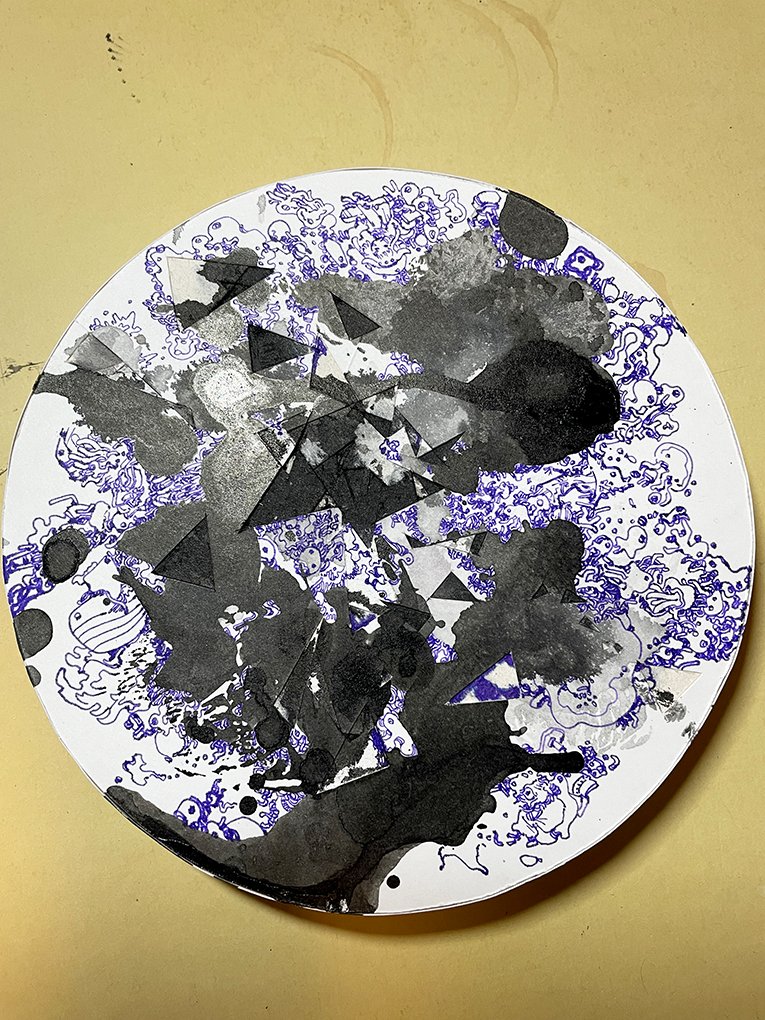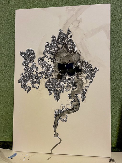 丸いキャンパスに垂らして描いて #ペン画 #万年筆 #art #絵柄が好みって人にフォローされたい